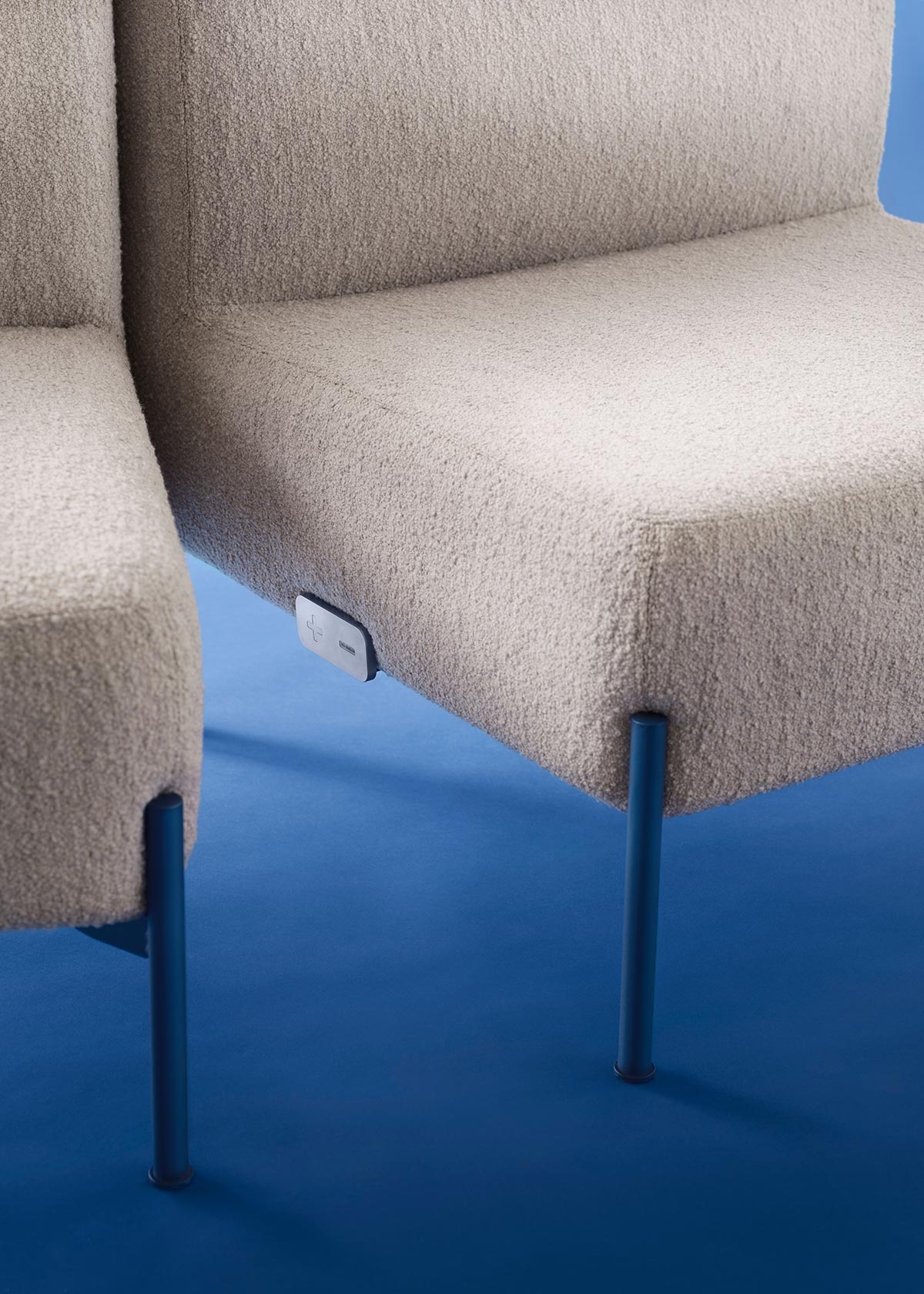 A simple and consistent leg system is used throughout. By rotating the legs, modules can be placed together or used as separate pieces. A visible magnetic connector becomes part of the expression, allowing units to be joined and separated with ease.