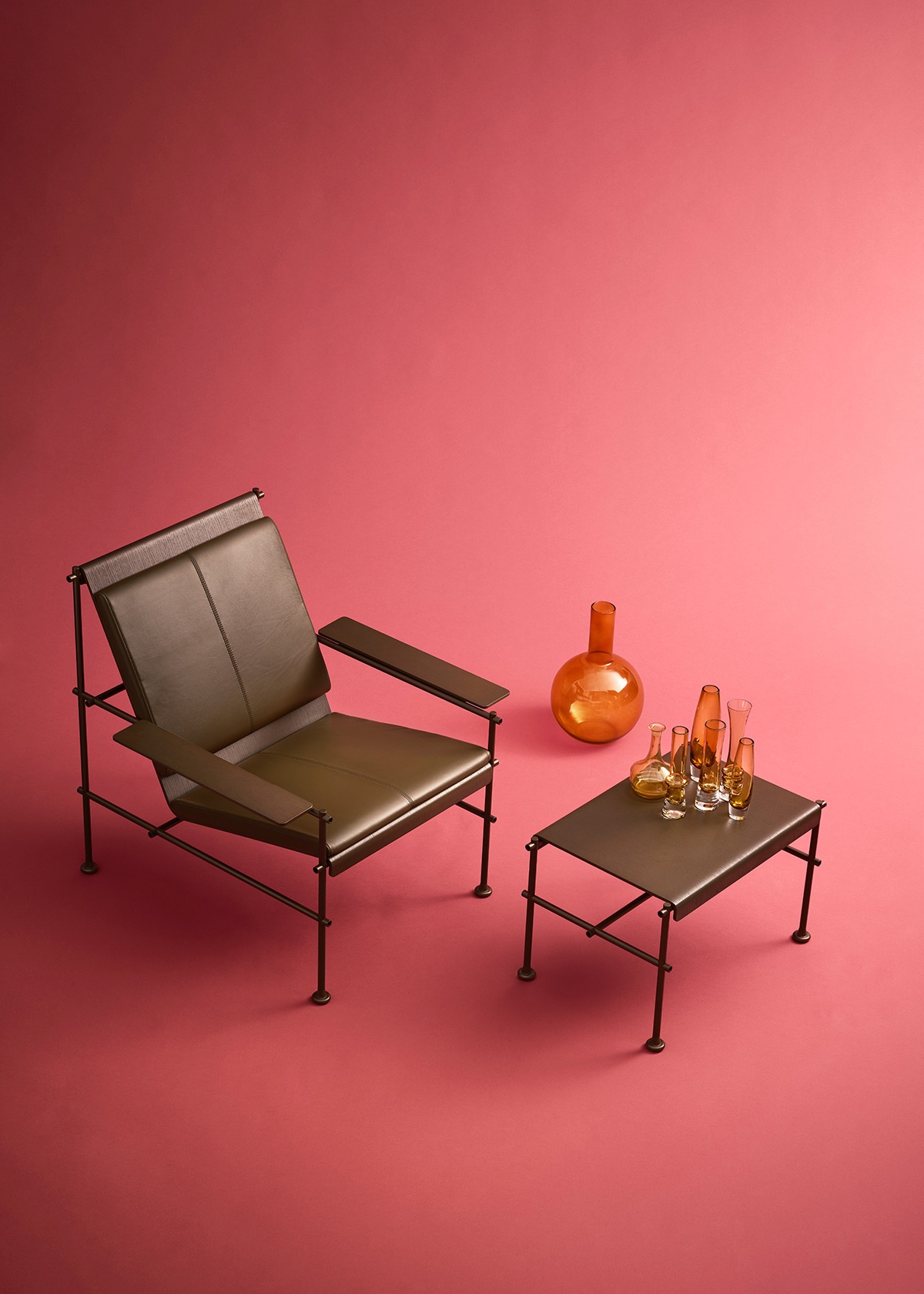 Each part of the family follows the same constructional logic and is designed to be separable for production, repair and long term use. The structure remains visible, and the design is defined by clarity, proportion and the relationship between construction and use. The low armchair offers a more relaxed seating position while maintaining the same structural clarity.