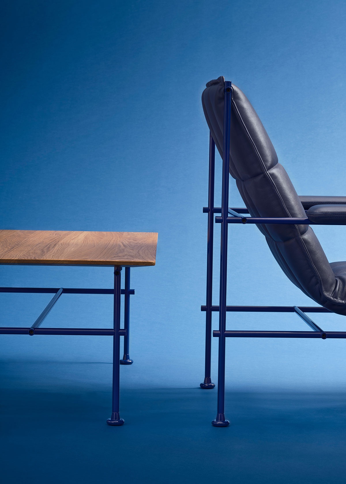 The tables translate the Villhem construction into side and coffee tables based on the same structural frame.