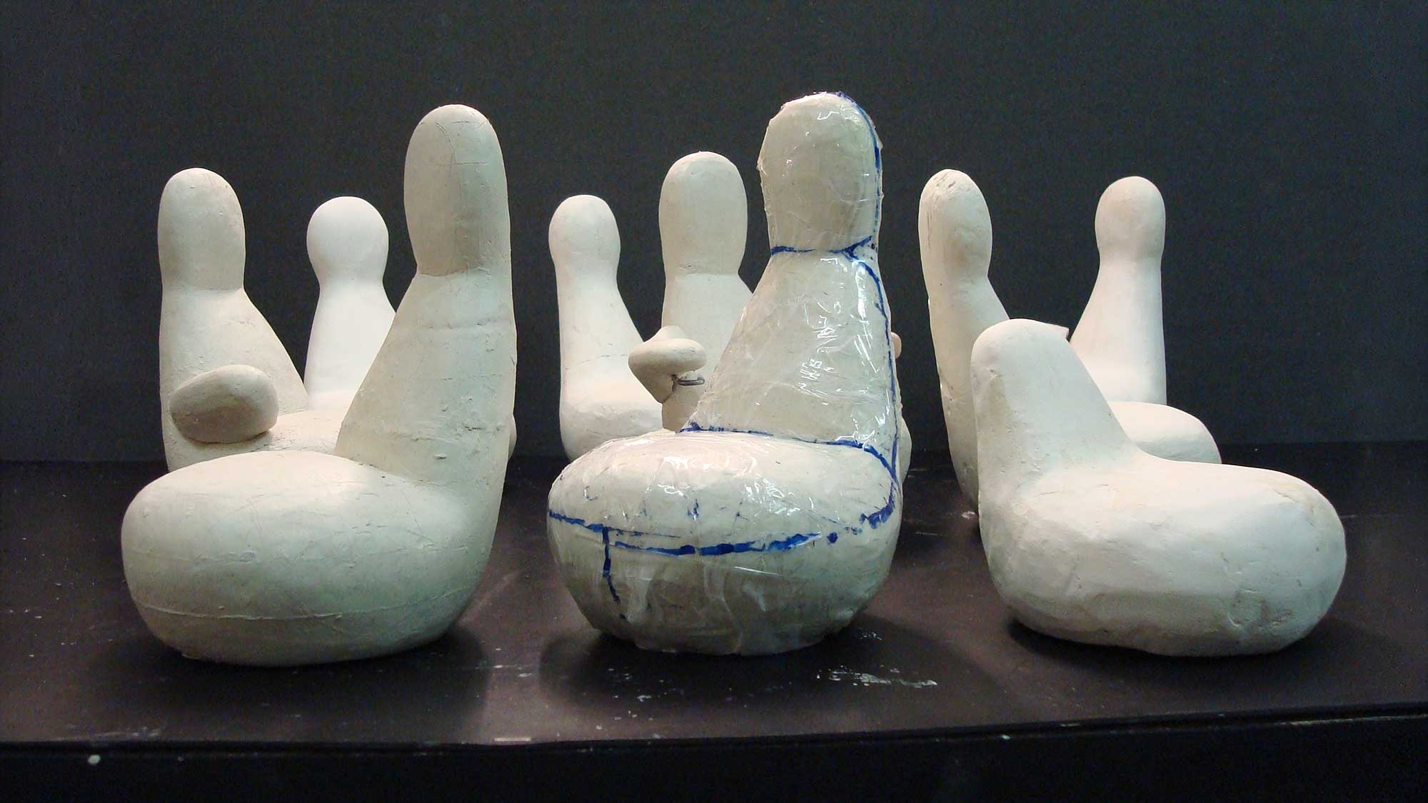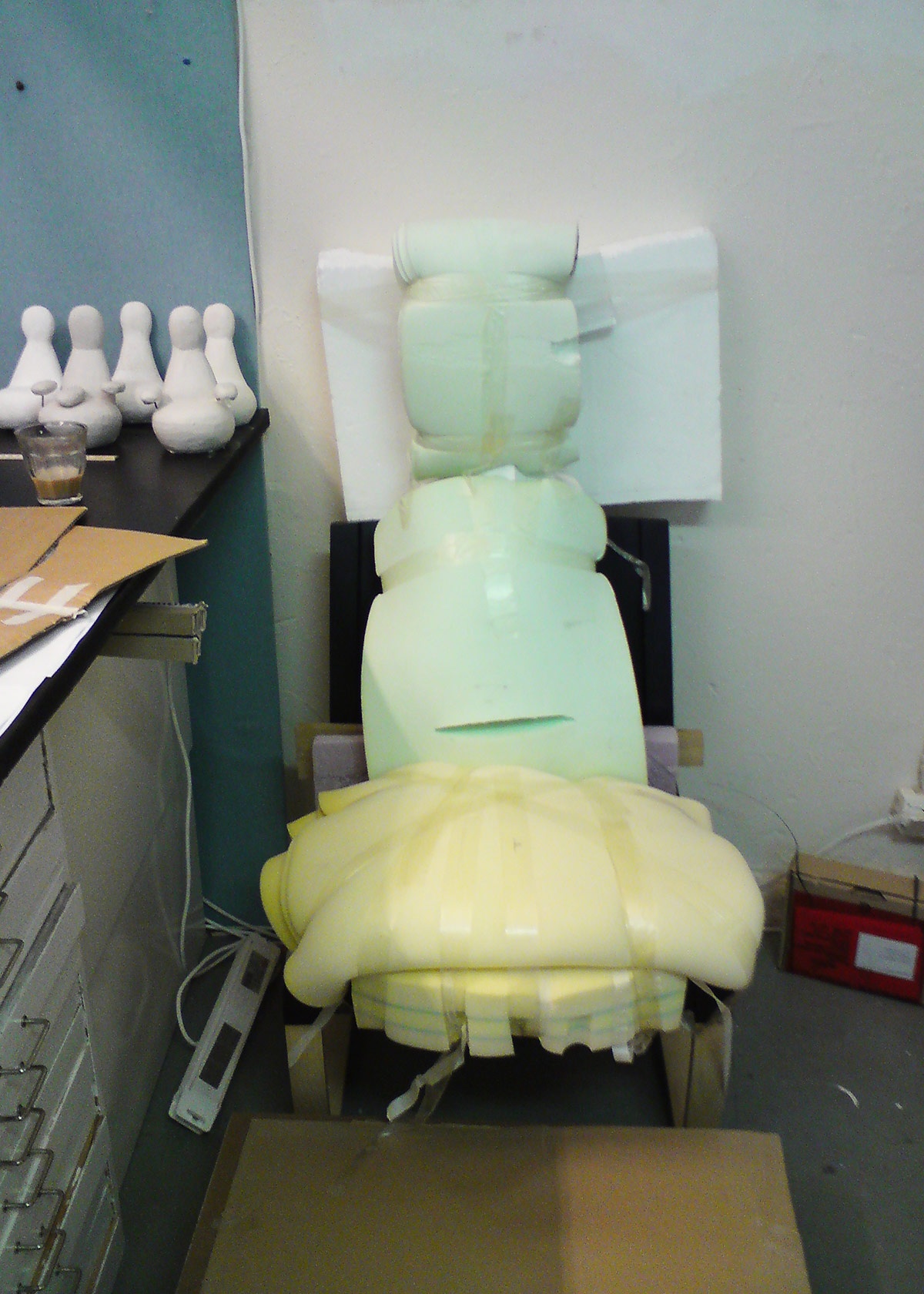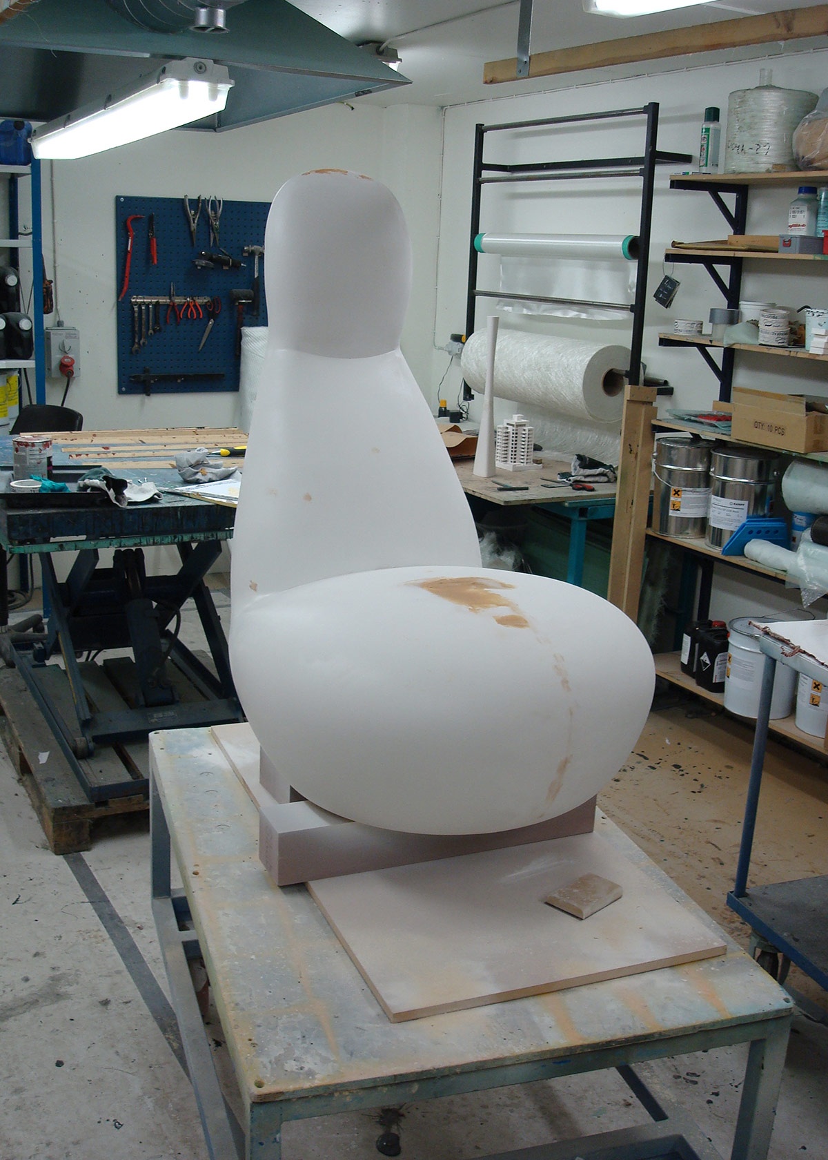 The development moved between sketches, scale models and full-scale prototypes. I worked with clay to shape the initial volumes, followed by larger models in foam and soft materials to test proportions and comfort. Once the form was established, I scanned the model and continued the development digitally, refining the geometry and constructing the internal structure.
