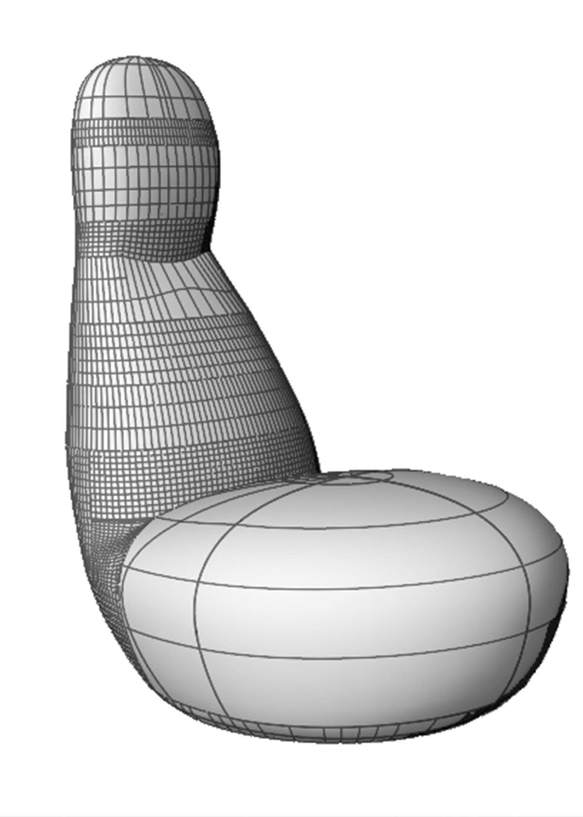 The final form is built as a continuous volume. Both the seat and the back are convex, which is unusual, particularly in the backrest. This pushes the shoulders slightly forward, creating a more active and supported sitting position while defining the character of the chair.