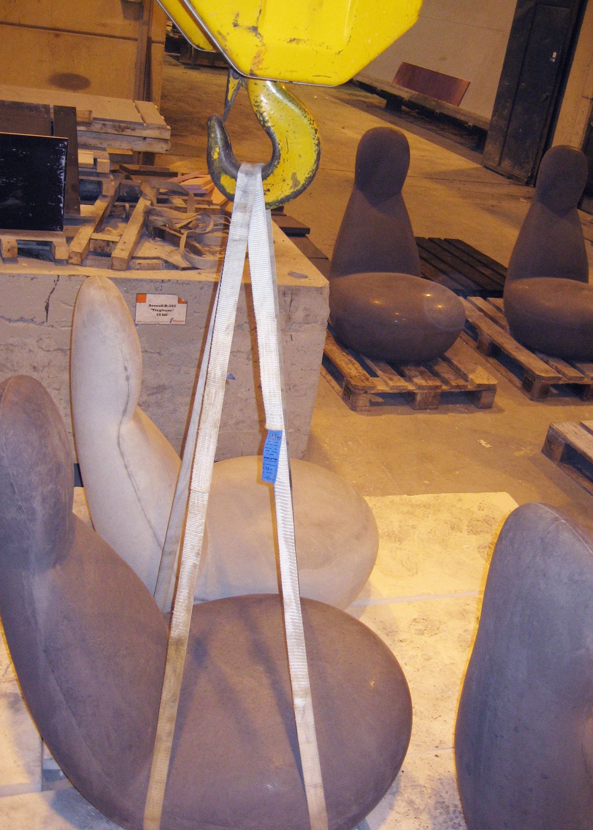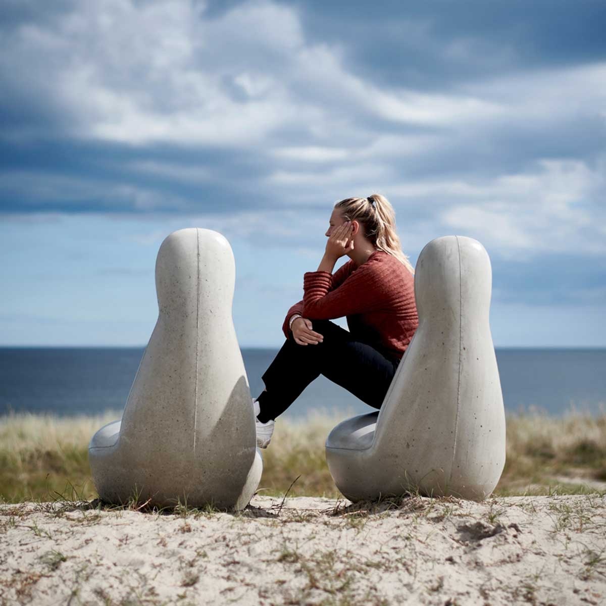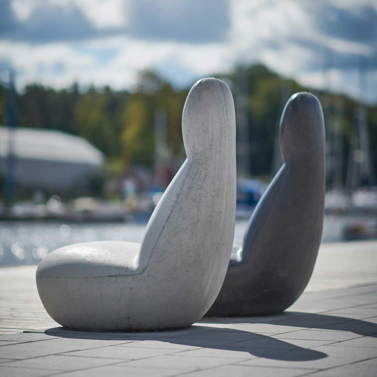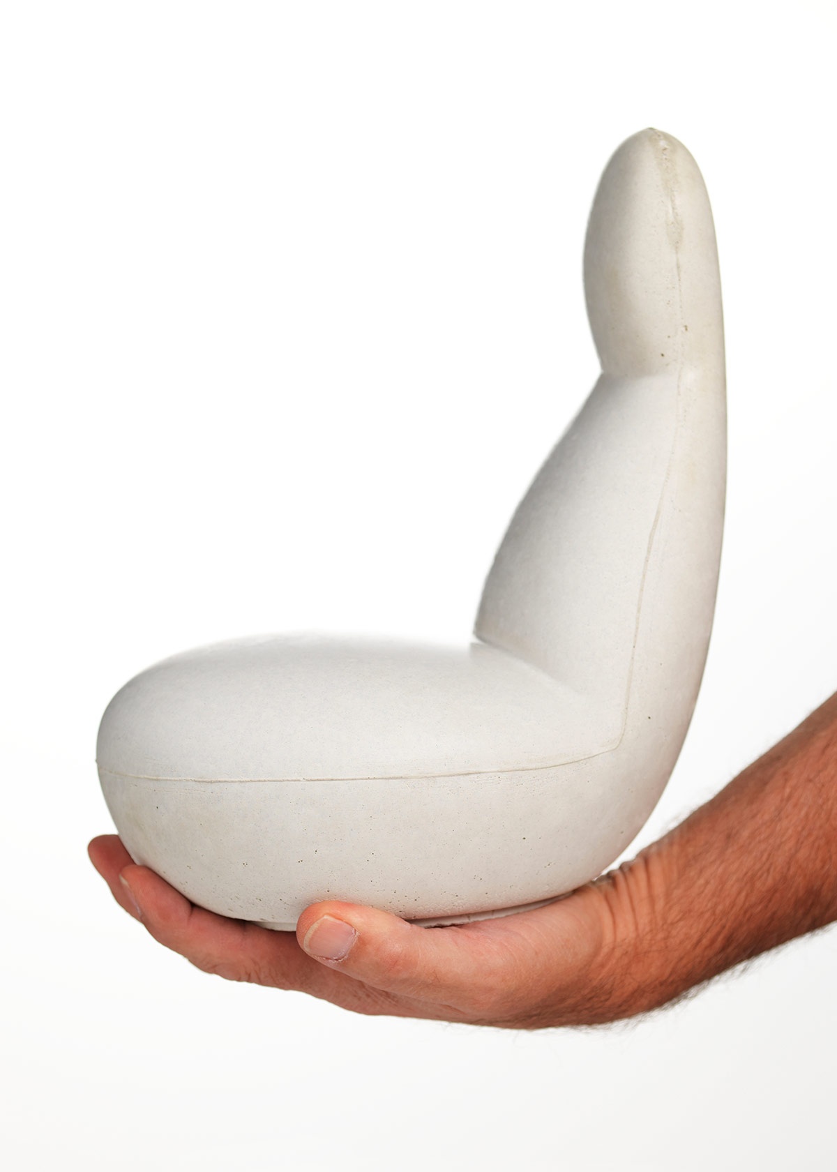 OPPOCEMENT translates the same form into concrete, allowing it to move into public environments. The soft, continuous geometry remains, while the material shifts the scale and permanence of the object.