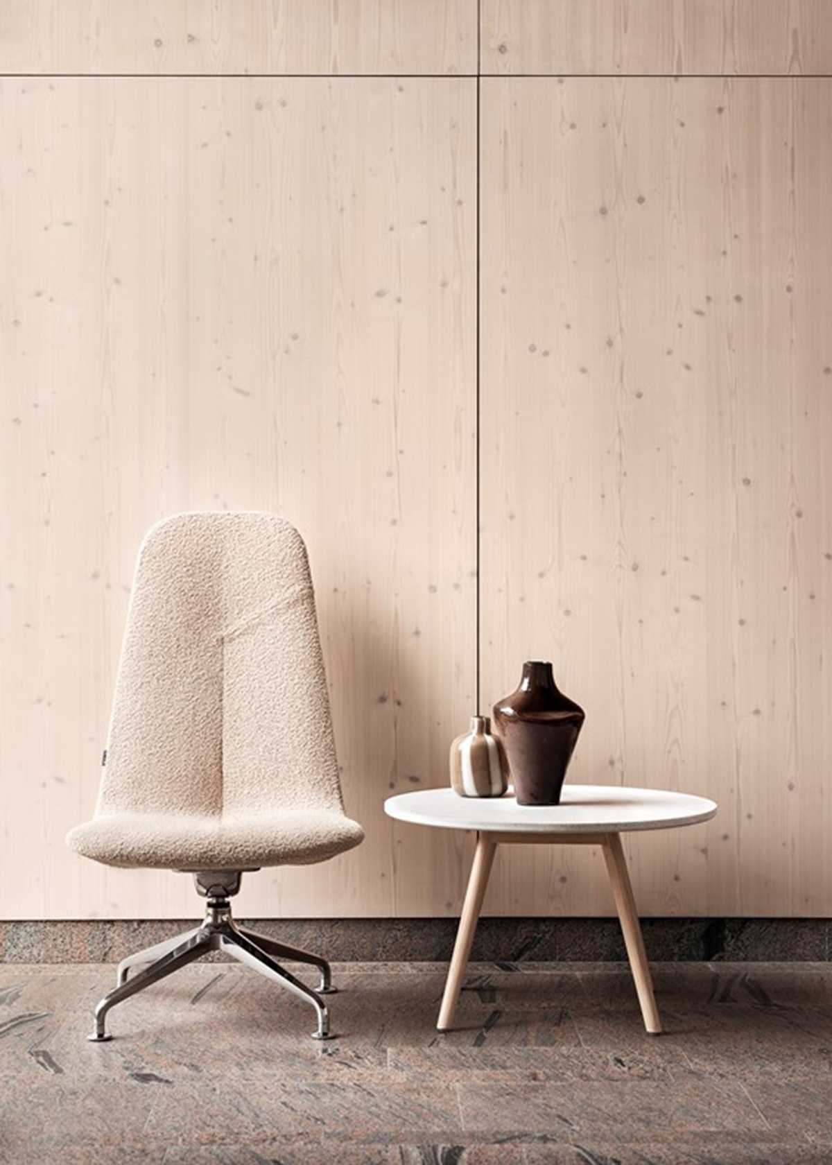 Primo Lounge is a upholstered easy chair with swivelling pillar frame with rocking effect. Softly inviting and with precise lines, Primo is a chair that delights the eye and the body.