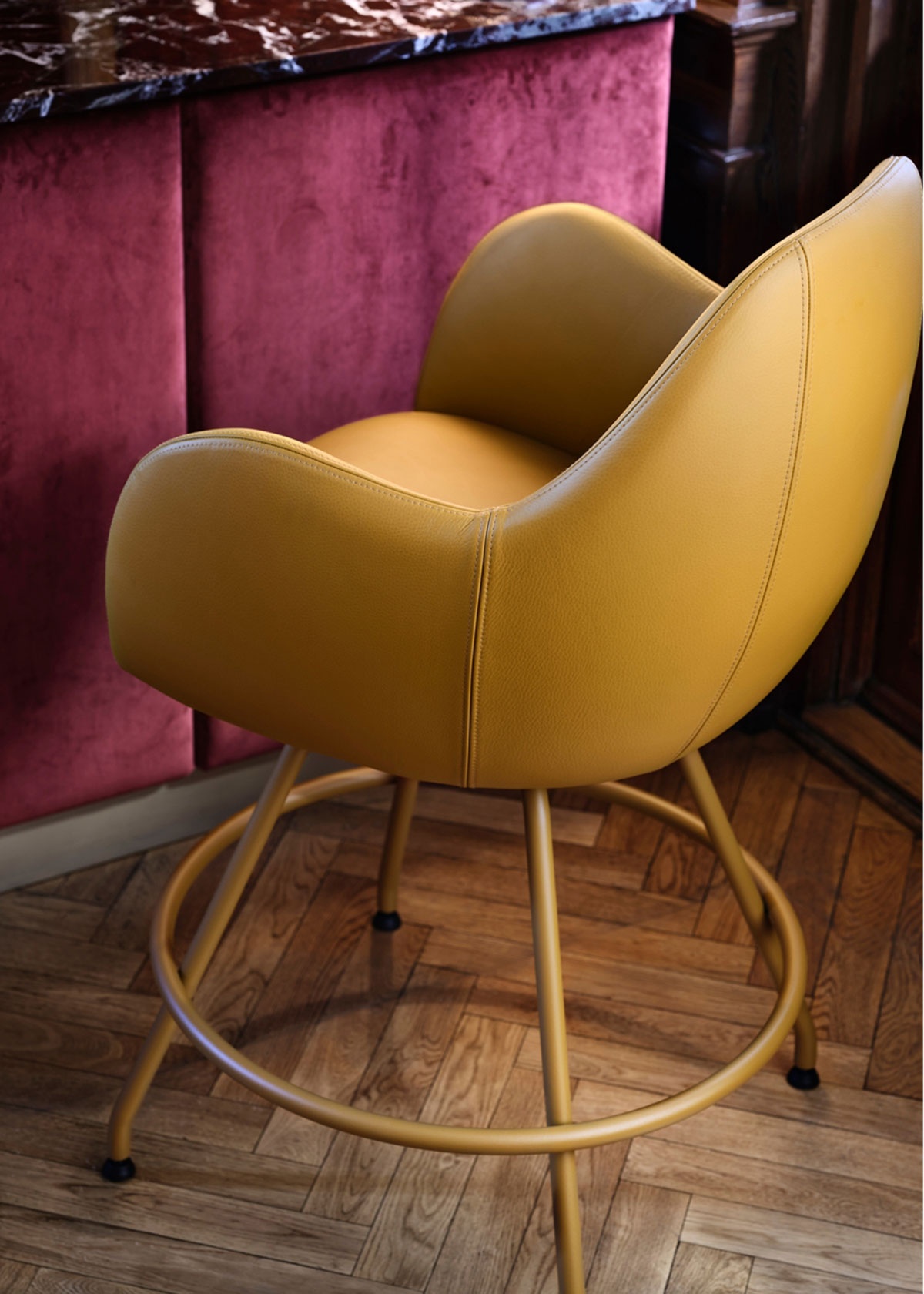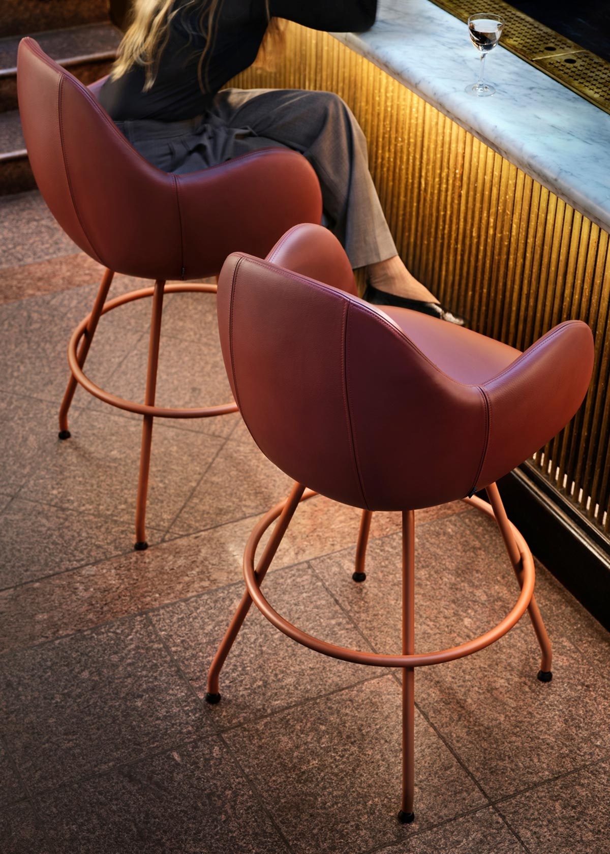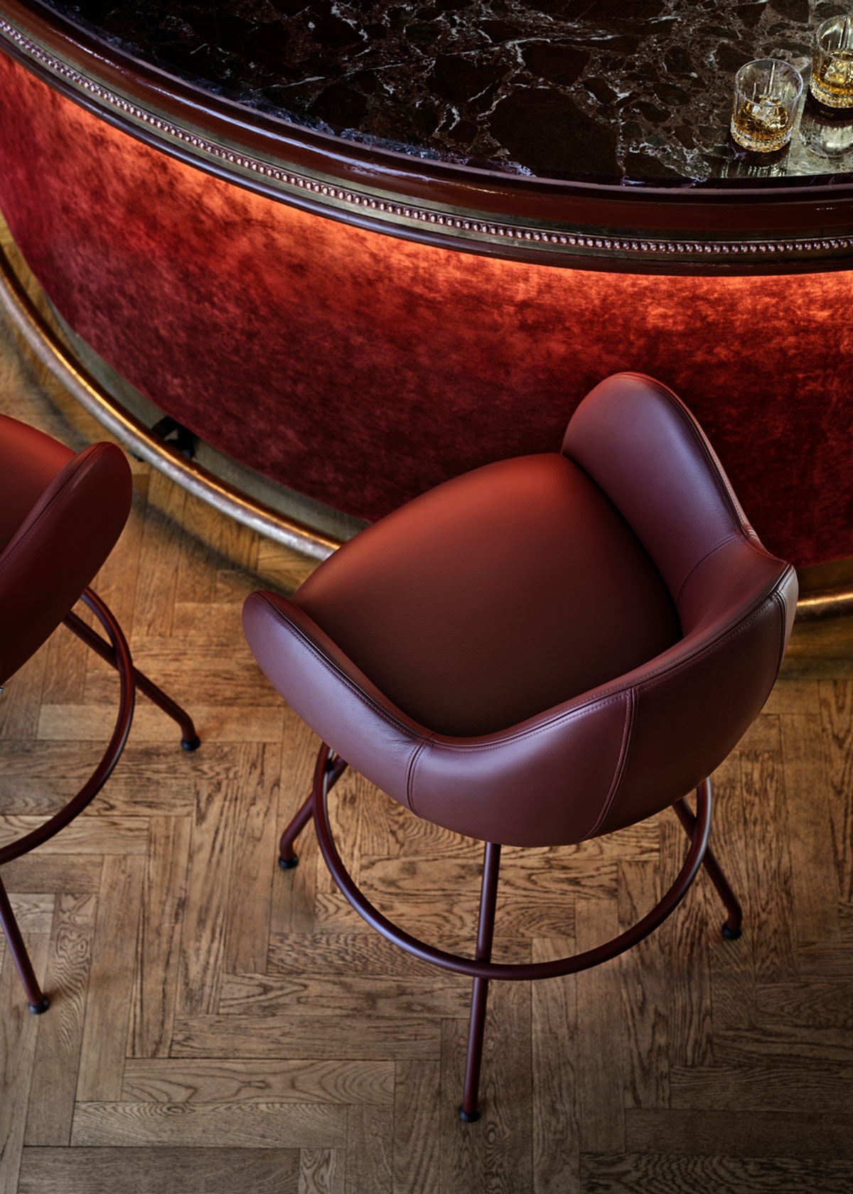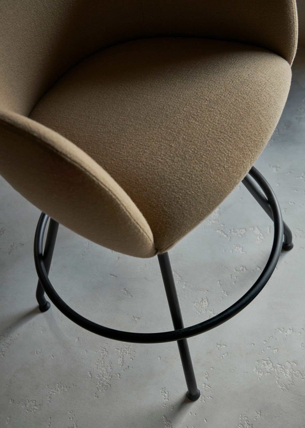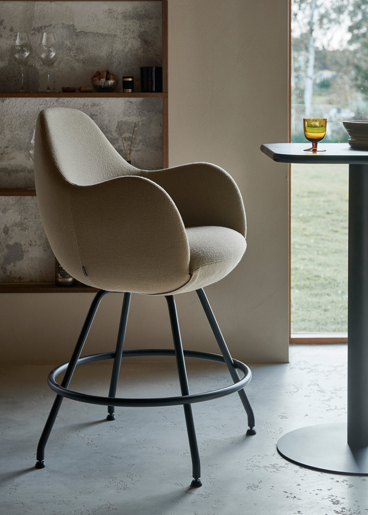 Wilmer Bar lifts the comfort and character of the Wilmer family to new heights. The soft contours and generous seat of the armchair are here translated into bar height. A place for conversations that last, for lively dinners, for moments that blur the line between work and leisure. With Wilmer Bar, exceptional comfort rises to meet modern life – high or low, together. Wilmer Bar Chair is a development of the Wilmer C, released in 2013.